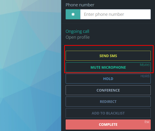 - Añadimos un botón de SMS: directamente desde el espacio de trabajo del agente se puede enviar un SMS al número del cliente;