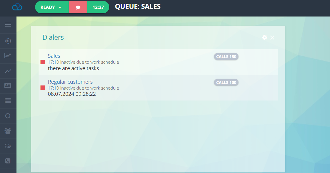 - Añadimos el widget «Llamadas automáticas», en el cual se agrupan las llamadas automáticas por colas y sus estatus;