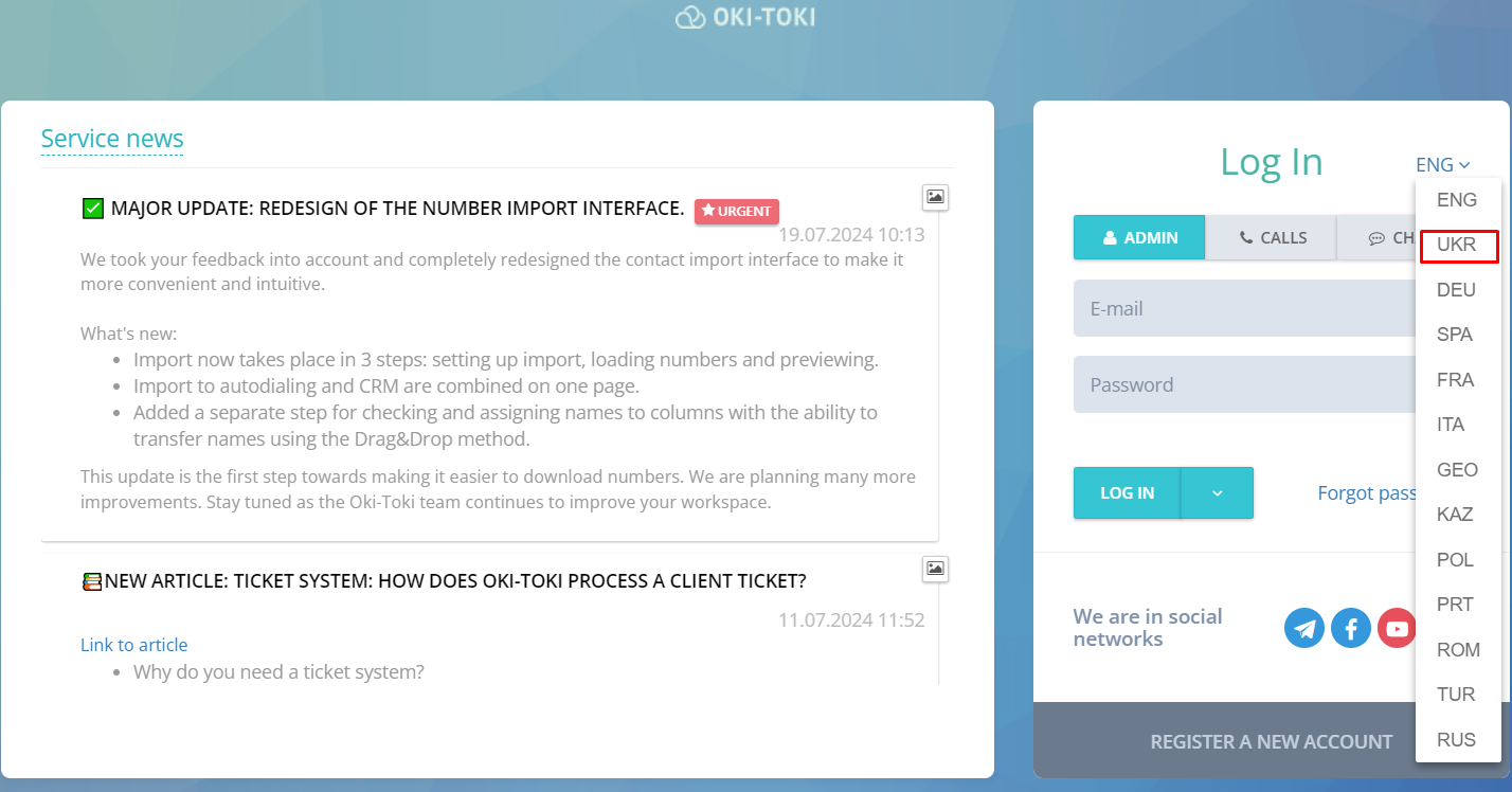 La interfaz de Oki-Toki ha sido traducida al ucraniano. Puedes cambiar el idioma en el menú de autenticación.