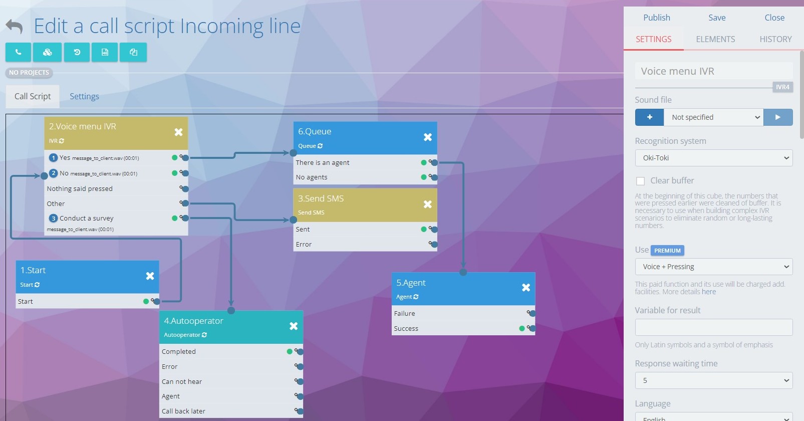 IVR (Menú de Voz Interactivo) – herramienta de script de llamada, con la cual se puede construir una secuencia de diálogo, creando un operador virtual básico. IVR informa al cliente información simple y sigue el script de llamada, reconociendo respuestas de los clientes o pulsaciones de DTMF.
