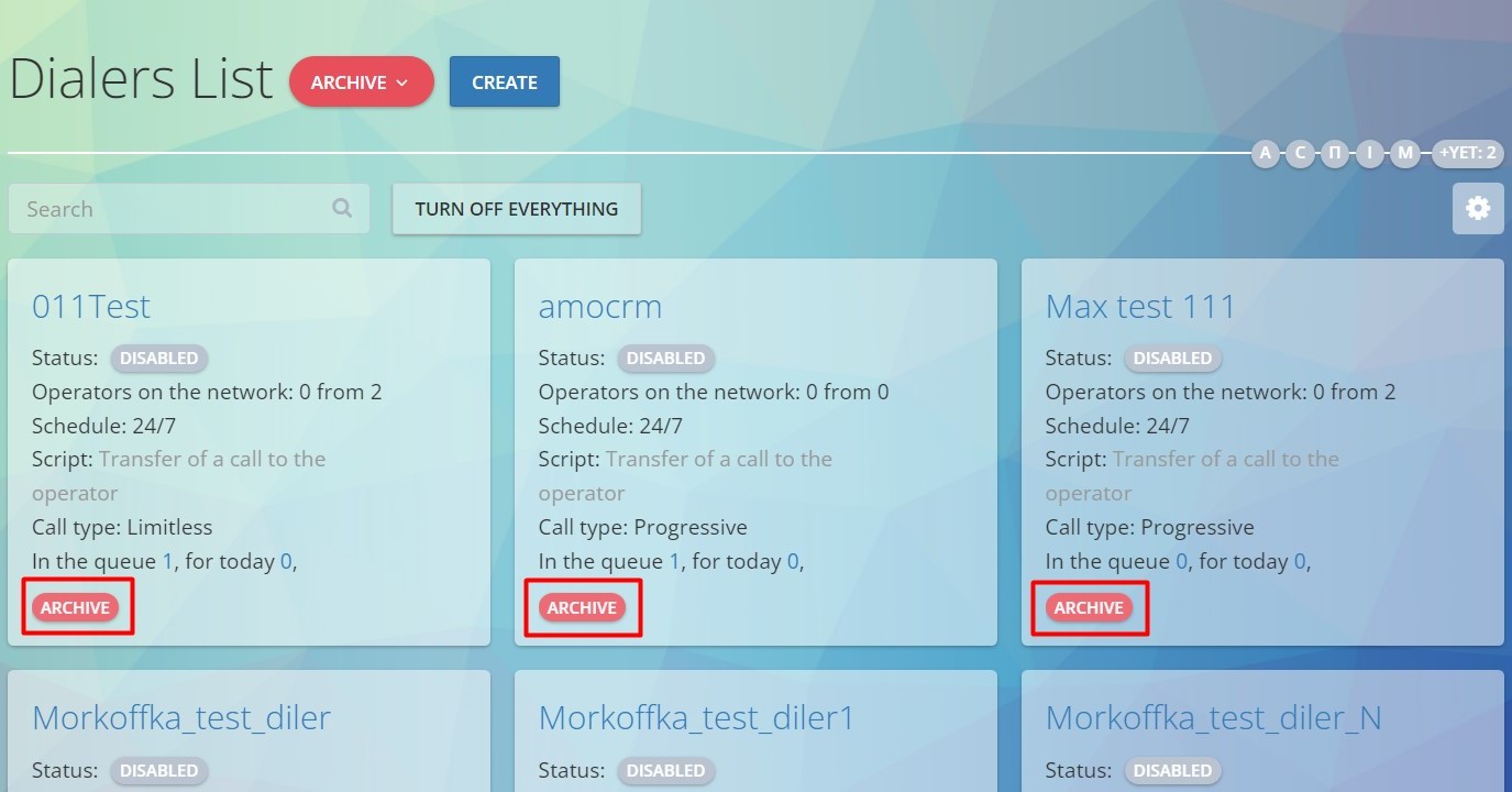 Se agregó un sistema de autoarchivado de objetos obsoletos. Si un usuario, una cola o, por ejemplo, llamadas automáticas de su empresa no se han utilizado en mucho tiempo – se sugerirá al administrador agregarlos al archivo, desde donde, si es necesario, se pueden restaurar. En los ajustes de la empresa se pueden configurar los criterios para buscar elementos obsoletos.